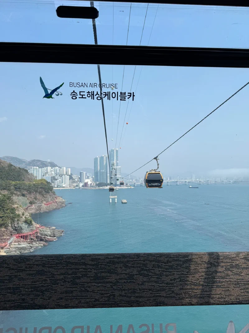 The Songdo Cable Car runs right over the ocean, connecting the coastal park back to the city. Gondolas gliding over turquoise water with the whole Busan skyline stretched out ahead of you.