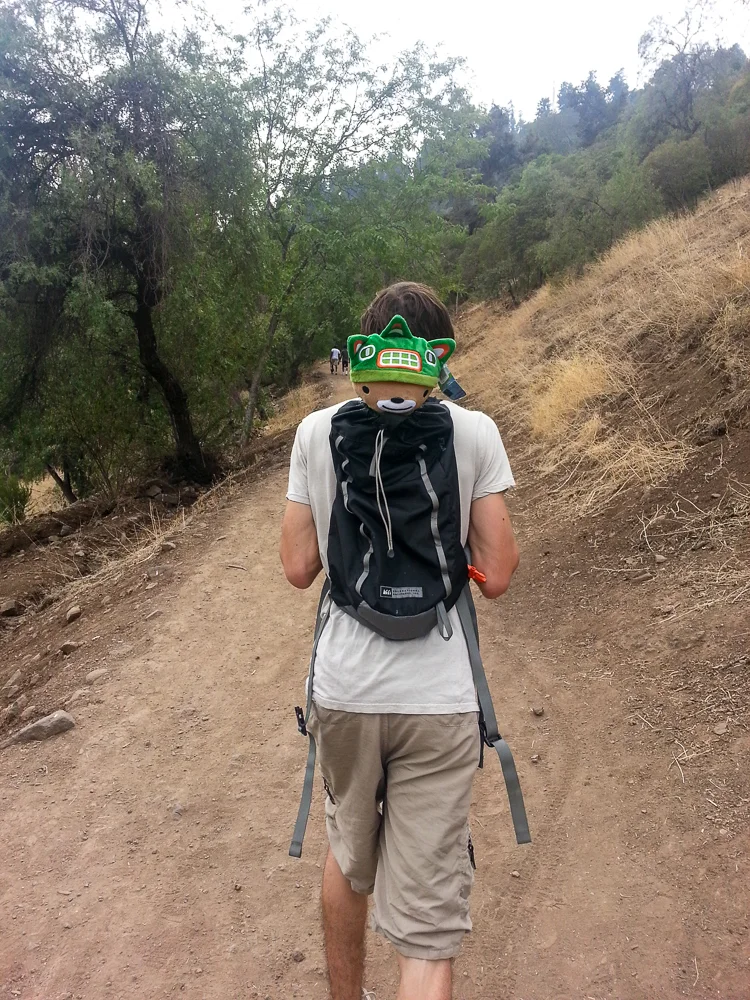 We live across from this hill with a white statue on it. I see it every day. One day, I decided Nicholas should carry me up that hill. He wanted to put me in a bag. I wanted him to hand carry me. We found a compromise.