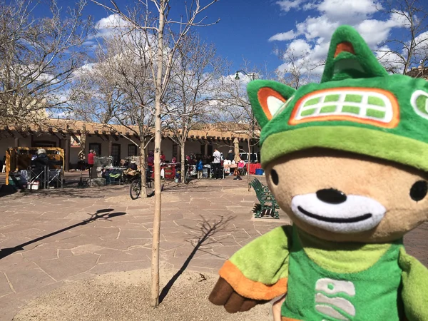 Just about everyone we told about being in New Mexico said we should go to Santa Fe. So the morning after camping at White Sands Nicholas and Pokin packed up the bags while I waited in the back seat, and then we drove on up.