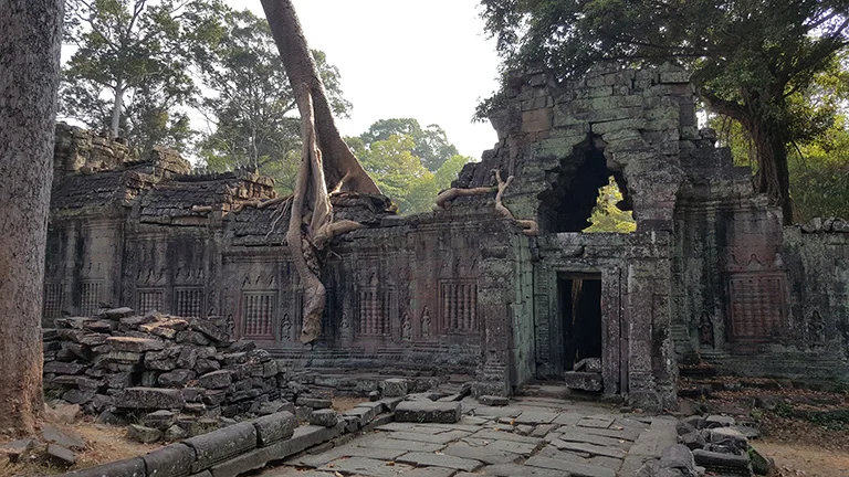 We went back to one of the temples Nicholas thought she needed to see, Ta Prohm. This is the temple with the famous gnarly roots growing out from the temple. Apparently this temple was built in the Bayon style of architecture from the last 12th to 13th century., and is actually the temple Tomb Raider was actually filmed in.
