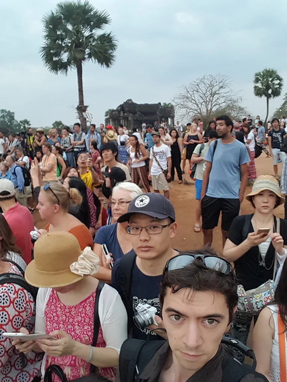 The next morning Pokin decided we needed to get sunrise photos of Angkor Wat. Terrible idea, thought I. Who wants to wake up that early and fight crowds of tourists just for a nice photo? Pokin does. And that means we have to as well. Ulgh.