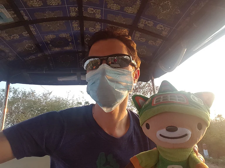 On our way back the Tuk Tuk started kicking up a lot of dust, so Nicholas put on a mask. He didn’t bring one for me, so I promptly made him give me his.