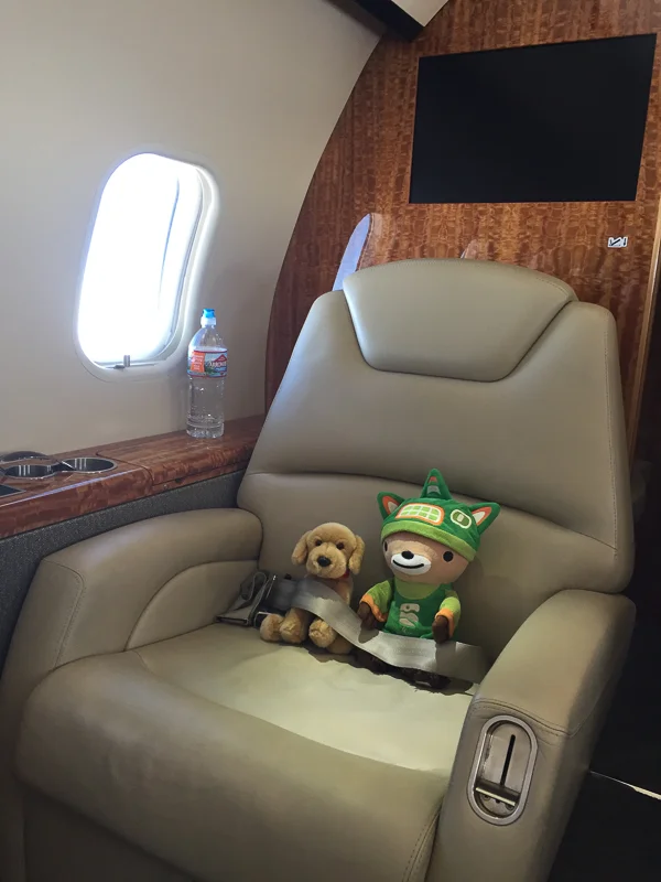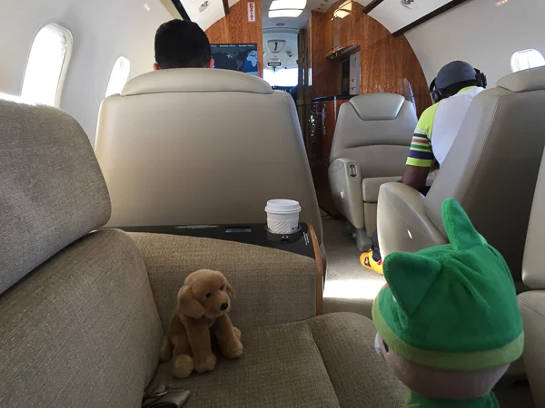 Today I met Puppy for the first time. Puppy’s Linda’s dog bud. It might have been his first time flying private.