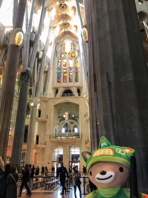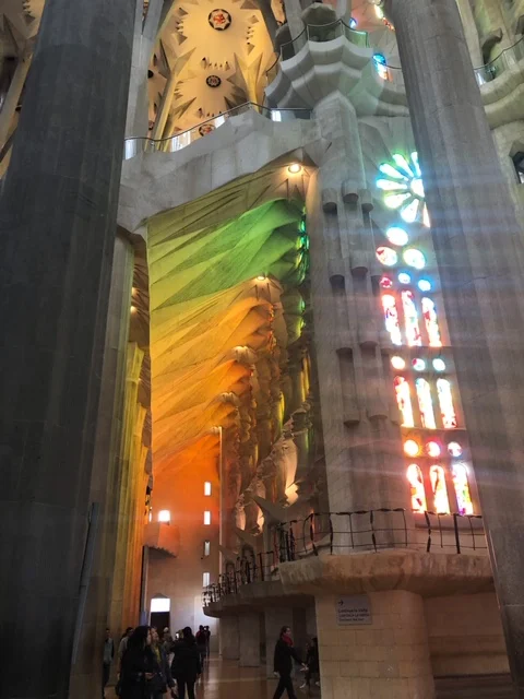 I learned that the pillars were inspired by tree trunks, and that the different columns were made of different stone to support different heights. The stained glass was also designed deliberately with a deliberate mood shift from warm glows to cool.