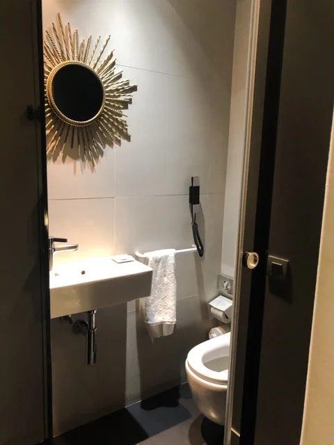 Our room came with a European-sized bathroom, but an ample sized voyeur balcony and pillow kingdom. You bet I made myself comfortable in the proper spot.