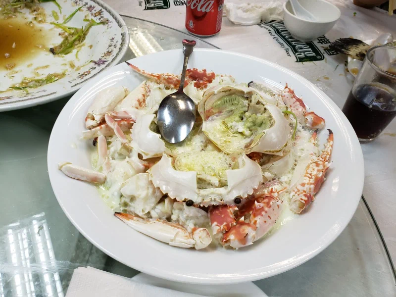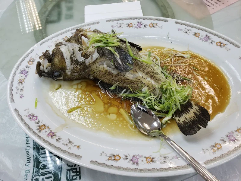 Pokin had it in her head that we were going to take everyone to the Aberdeen Wholesale Fish Market, specifically to a canteen. I cannot think of a place that more aptly fit the description of ‘hole in the wall." It really was a hole in the wall – I barely would have found the entrance if we weren’t given a photo of what to look for. Apparently this place used to be a local’s secret, but it got written up in places like the Lonely Planet so it’s not so secret anymore. Pokin met up with a person who knew a person, who had arranged to pick out some seafood for us that the restaurant then cooked. I saw some conversation between Pokin and some person, I saw some money change hands, and then we proceeded to sit down through way too many courses of seafood.