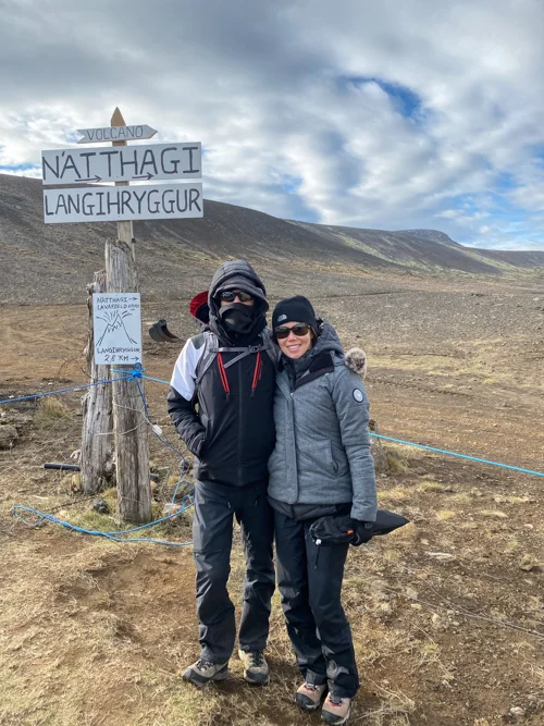 Well we were in the area anyway so we may as well see it, near gale force winds be darned. There are 3 parking lots to get to the Fagradalsfjall volcano. The first two involve a 40 minute hike to see the lava, whereas the third lot takes you almost right to the fields. So we picked lot C.