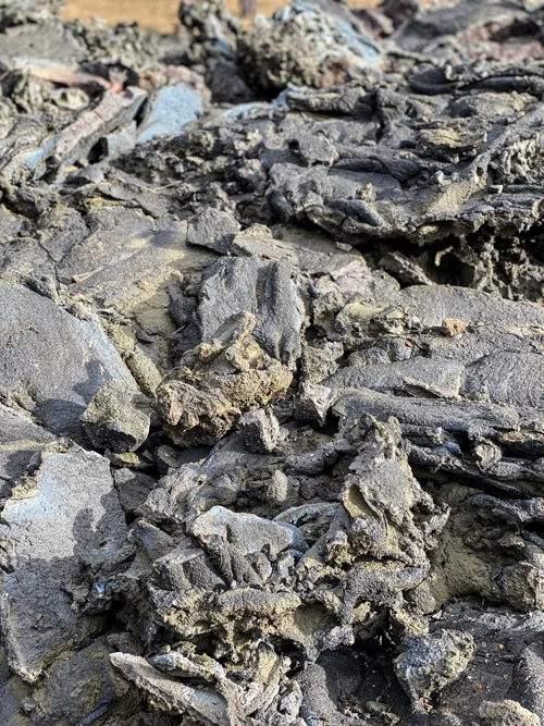 There’s a short hump you go up and over, which takes you into this valley. Most of the lava’s cooled off but you can still see small wisps of smoke.