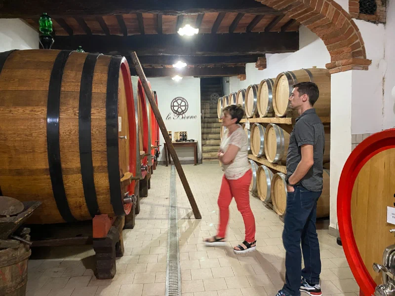 Pokin had booked a wine tasting at a place called Podere Le Berne, a family-run estate in the hills outside Montepulciano. It was supposed to be for all four of them — Nicholas, Pokin, Bob, and Jane — plus me. A nice afternoon out in the vineyards, learning about Vino Nobile di Montepulciano from the Natalini family, who have been growing grapes here since the 1960s.