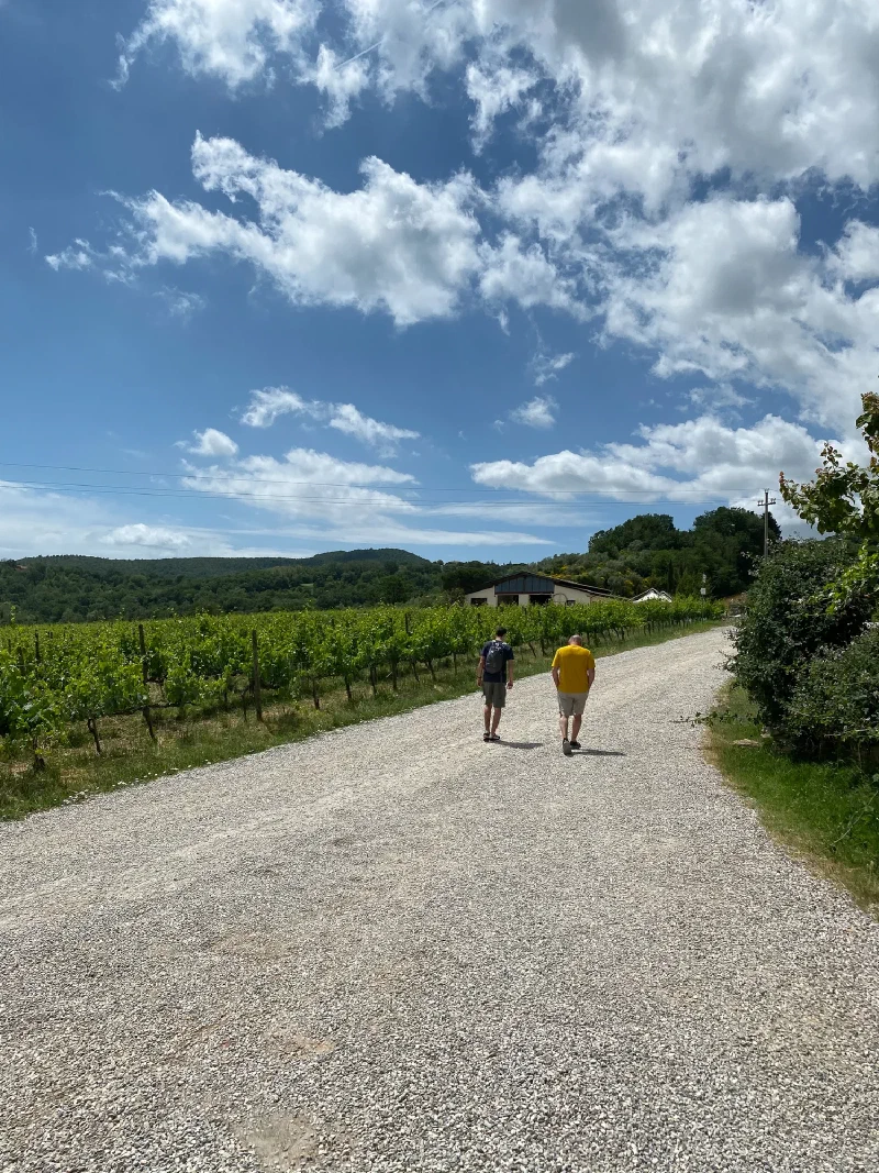 On the way out of Montepulciano, we stopped at a vineyard. Not for a tasting this time — just for the views. At this point we’d had enough wine education to last a lifetime. But the landscape around these estates is something else entirely.