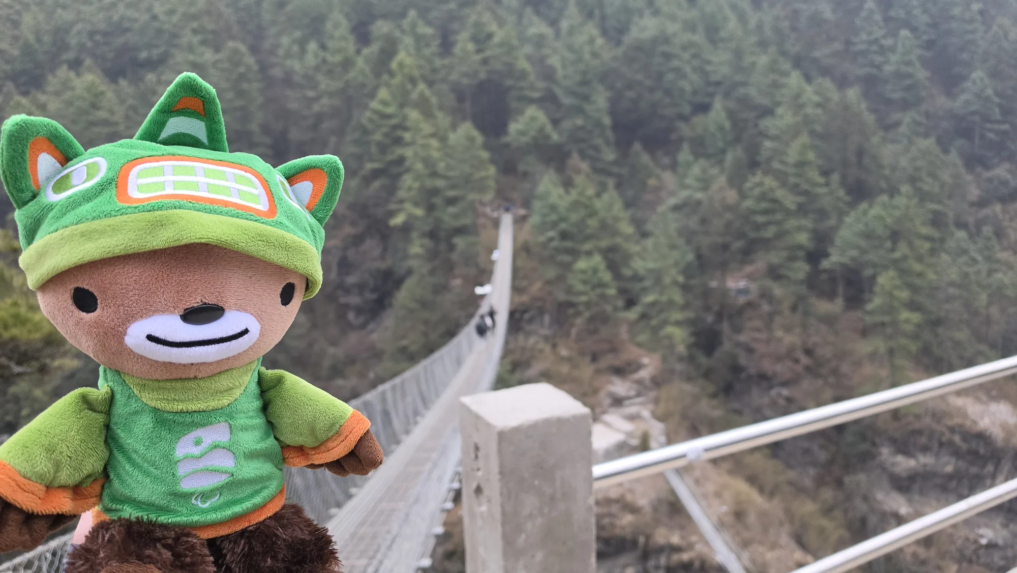 The Hillary Suspension Bridge sits about 125 meters (410 feet) above the Dudh Koshi river. Named after Sir Edmund Hillary, who funded infrastructure projects across the Khumbu after his 1953 Everest summit, the bridge is a long, swaying span of steel cable and wire mesh over a gorge that you really don’t want to look down into.